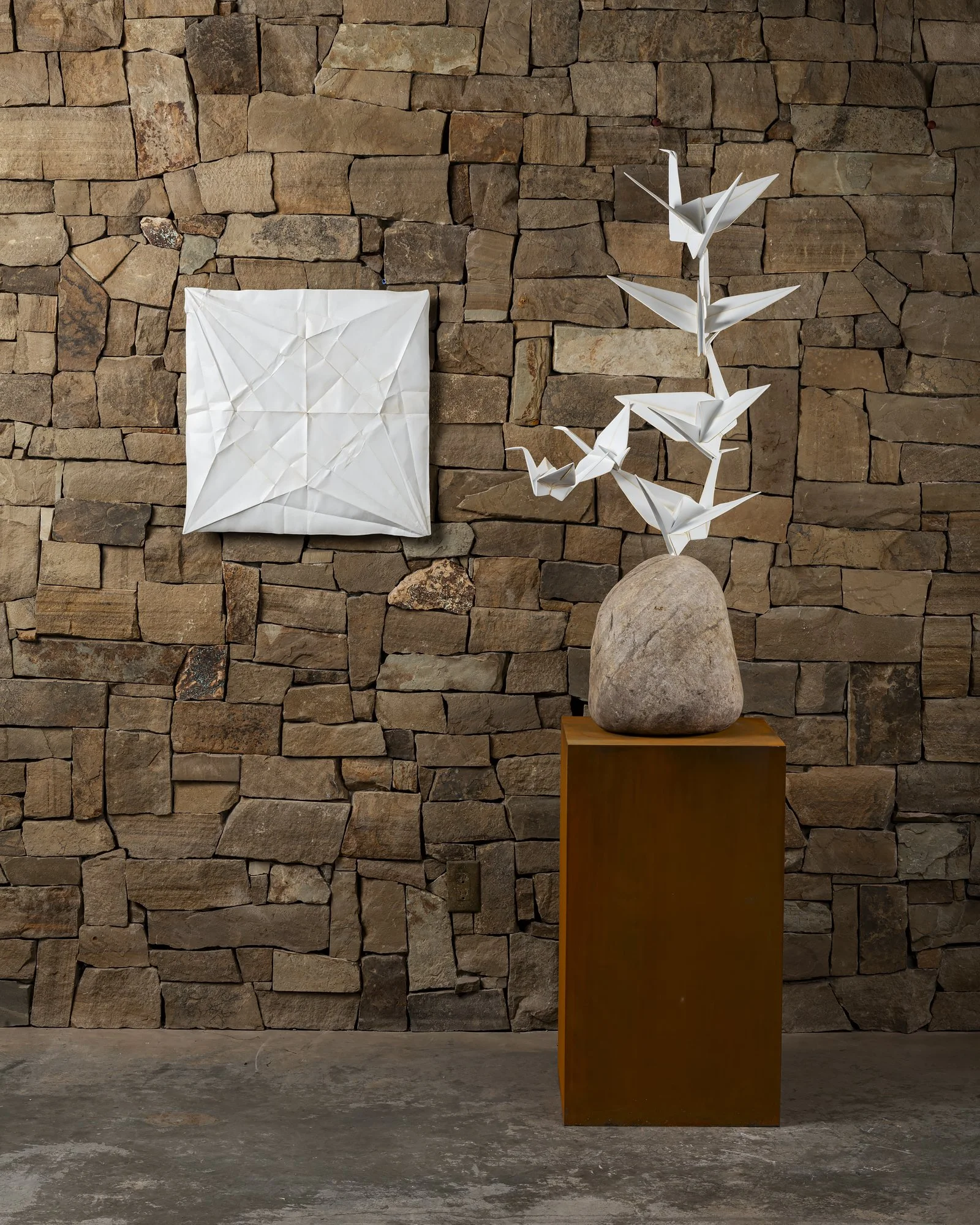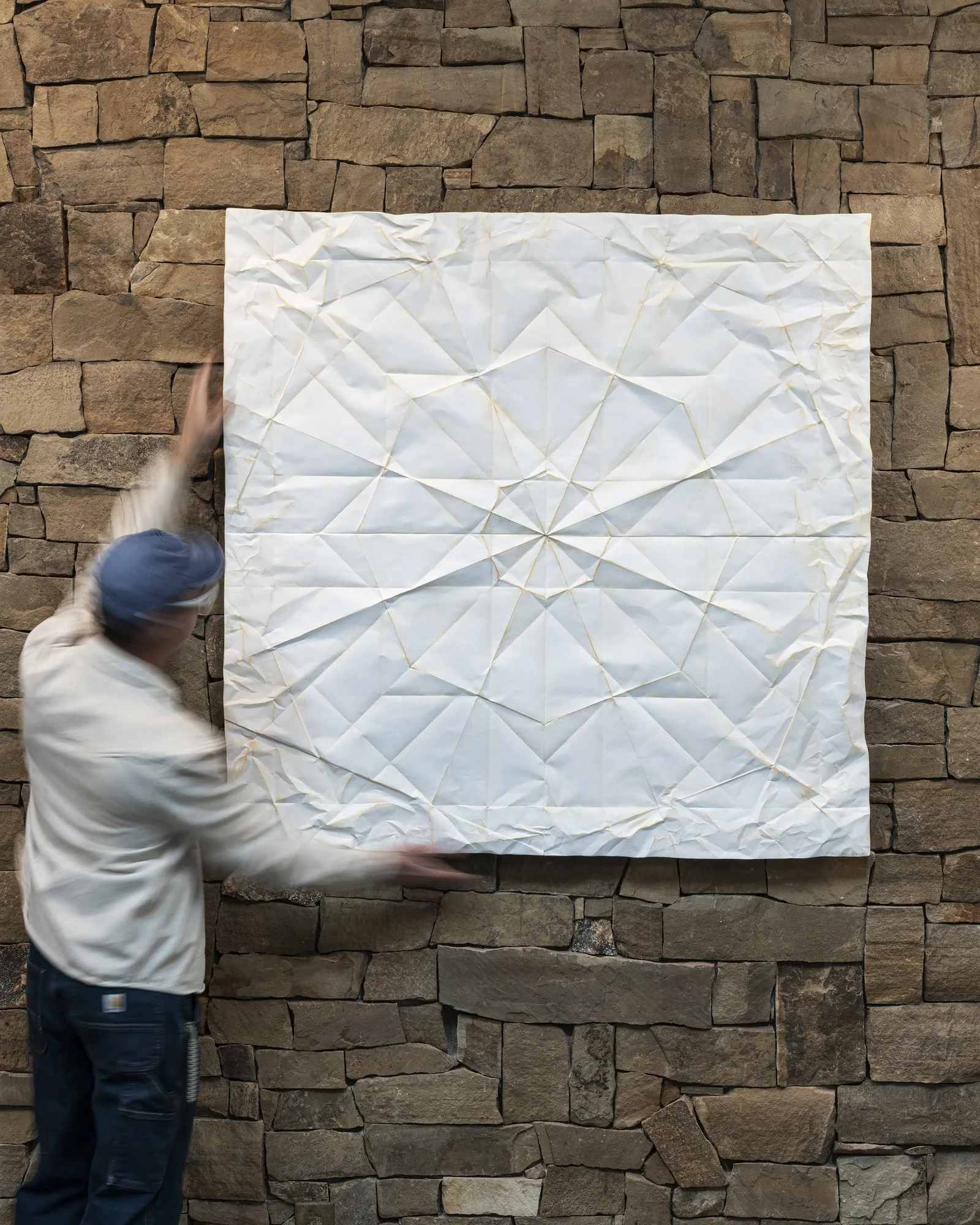Collaboration is a key component in my process. Not only do I work with skilled technicians and engineers who help make the pieces in metal but I often begin my work in collaboration with some of the worlds most talented paper folders known as origami artists. My desire to create complex ideas and forms that begin with a simple paper square is beyond my ability. Like a musician, I have found that collaboration magnifies my initial ideas into realized masterworks of paper folding. For ten years now, I have collaborated with physicist and mathematician Dr. Robert J. Lang, who can fold almost any detail out of a single square. Master folder Michael G. LaFosse has pioneered designs that are elegant and simple out of his own handmade papers. Next generation folders like Beth Johnson add fresh design approaches and possibilities that I am excited to work beside. More than anyone else by my side, my wife Jennifer has managed the growing administration of an art studio that has become a major corporation. Her skills of organization have enabled me to continue my collaborative creativity.