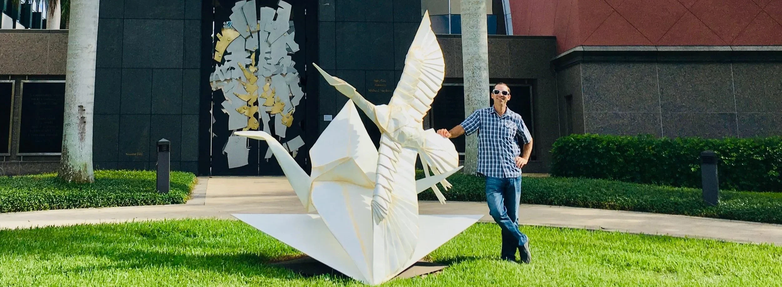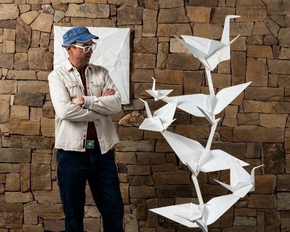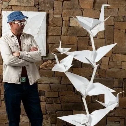 Artist Kevin Box has a mission to bring peaceful messages to the planet...now and hundreds of years from now! He "supersizes" tiny paper origami foldings into monumental museum quality metal sculptures for a traveling exhibition he has titled "Origami in the Garden".