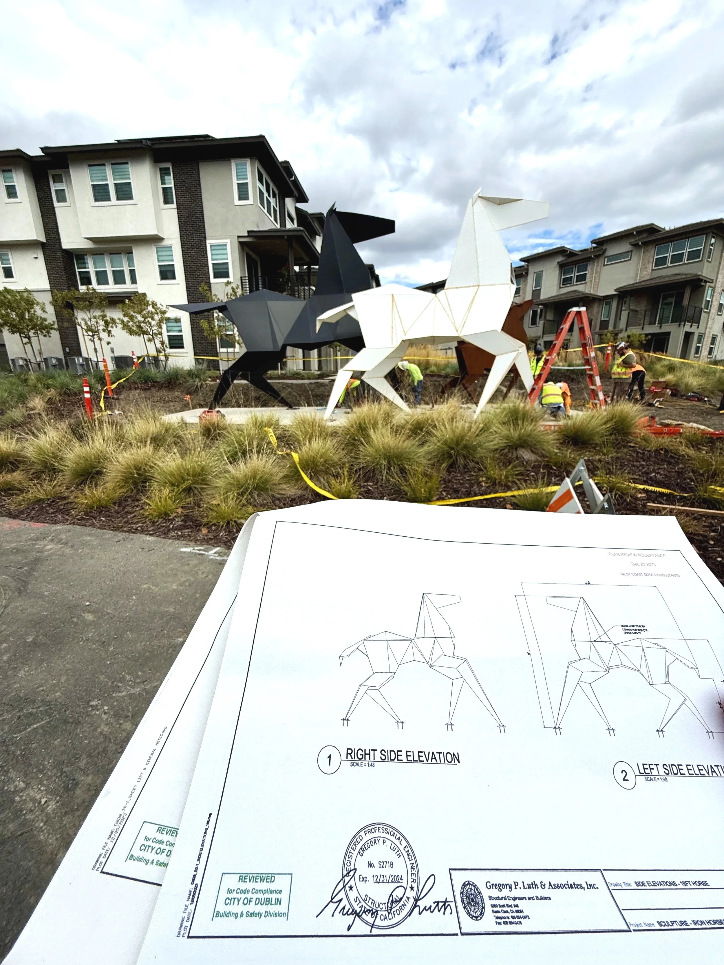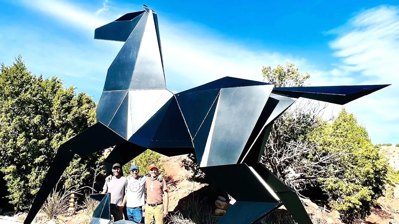 Origami artist Te Jui Fu and metal sculptor Kevin Box decided that a horse would be the subject of their first collaboration. They created the paper original together and invented every fold from scratch. They chose the horse for its symbolism: a powerful, collaborative creature long represented in art, yet never through the lens of origami. While it may resemble a horse, the subject is actually a single square of paper—transformed. Our work was the first to use origami as both inspiration and aesthetic in fine art sculpture.