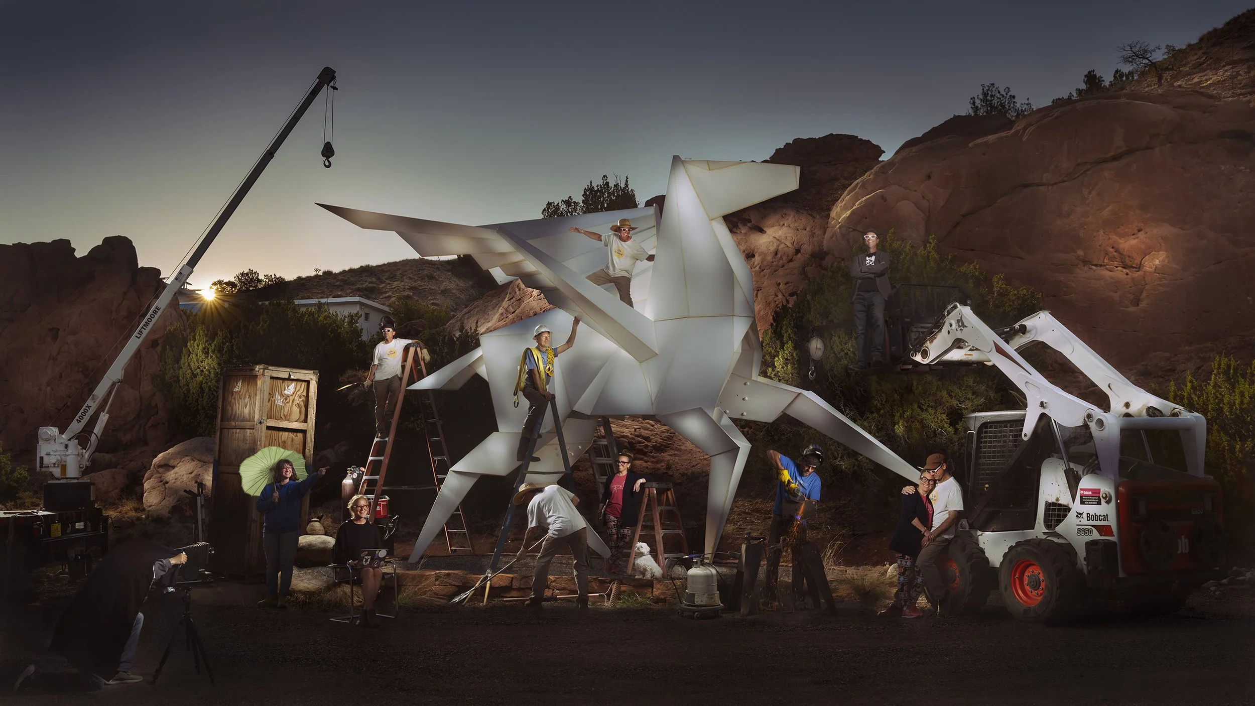 KEVIN BOX graduated from the School of Visual Arts in New York City and now resides in Santa Fe, New Mexico. His background as an art foundry production manager enabled him to pioneer a unique process that transforms delicate paper into museum quality metals. From the beginning of Box’s career he received recognition from other artists and collectors alike with his unique and refreshing style. In 2004 he was elected as the youngest member of the National Sculptors Guild and was recognized by Southwest Art Magazine as one of the top 21 artists under 31 in the southwest. Over the years he has perfected his unique approach and applied it to complex design collaborations with world renowned origami masters. Kevin and his wife Jennifer Box, created OrigamiintheGarden in 2013, the first exhibition opened at the Santa Fe Botanical Garden in 2014 and the exhibition has been inspiring Botanical Gardens throughout the United States ever since.